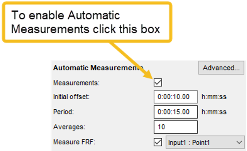 Frequency Response Functions (FRFs). To calculate FRFs click the “Measure FRF:” box in the Automatic Measurements section as seen in