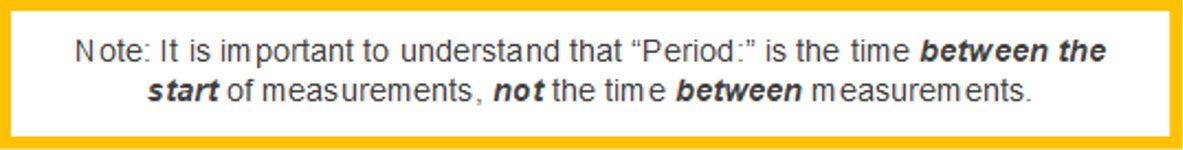 When enabled, the box will be checked and the “Initial Offset:,” “Period:,” and “Averages:” input boxes will become active. Testlab will wait for the “Initial Offset:” time to elapse before starting the first set of averages for the measurement. While Simcenter Testlab is averaging the number of frames programmed in the “Averages:” input box, the “Period:” countdown begins. Once the “Period:” time has elapsed, Simcenter Testlab will begin the next measurement.