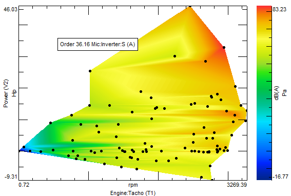 For example, in the plot below, sound pressure is plotted against both engine RPM and horsepower.