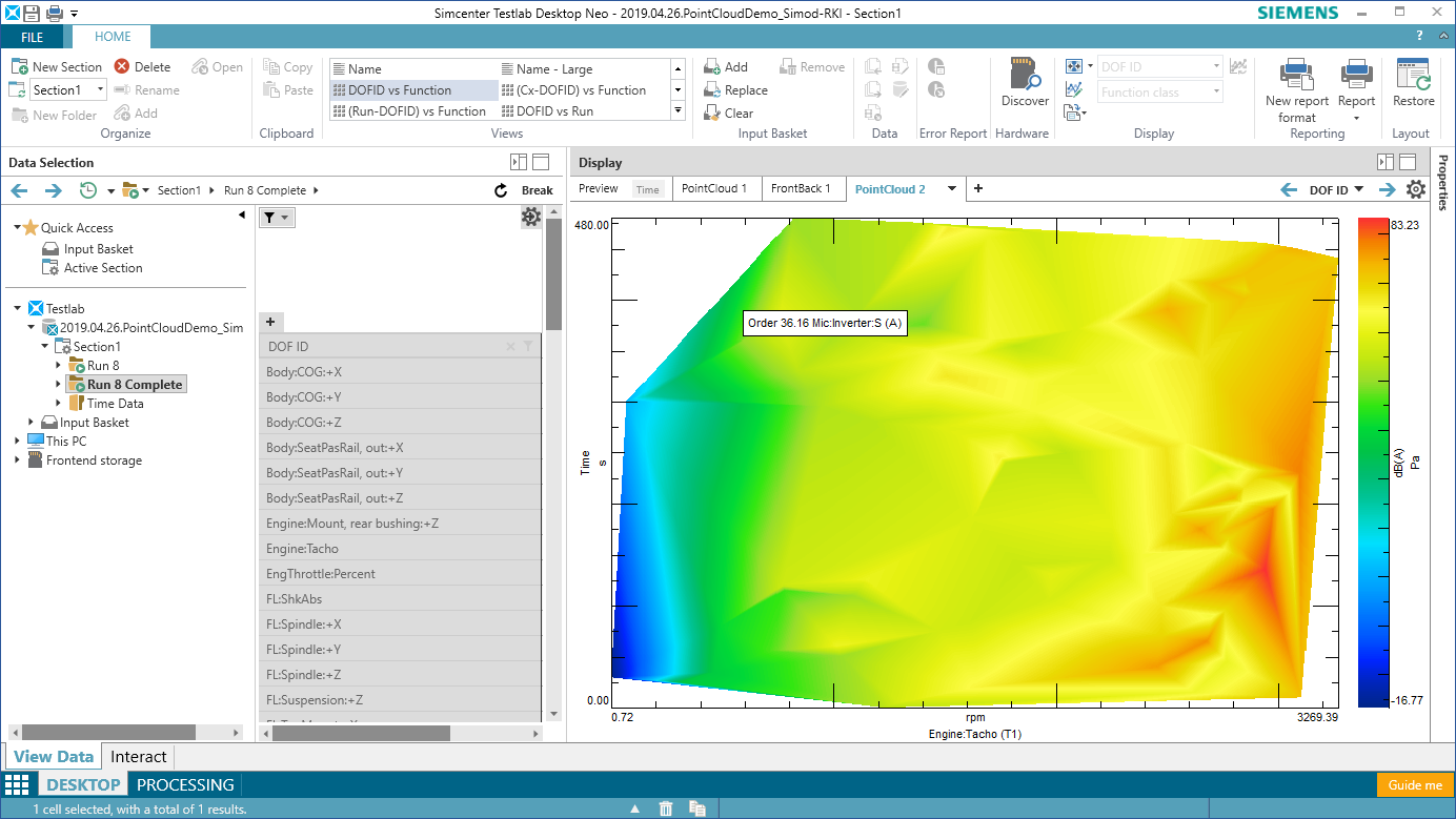 The point cloud display is available in both Simcenter Testlab 2019.1 and Simcenter Testlab Neo 2019.1 and higher.