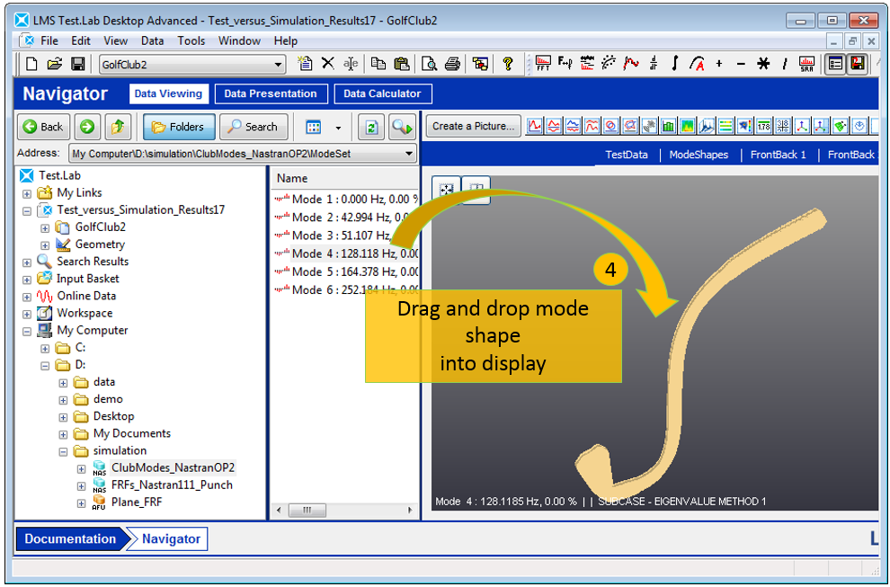 Just browse to the Nastran data in the Simcenter Testlab Desktop Navigator! Nastran punch files and output2 files can now be viewed in Simcenter Testlab. It is possible to read and view the contents of the file directly without any translation. Simply navigate to the directory containing the files and drag and drop into a display.